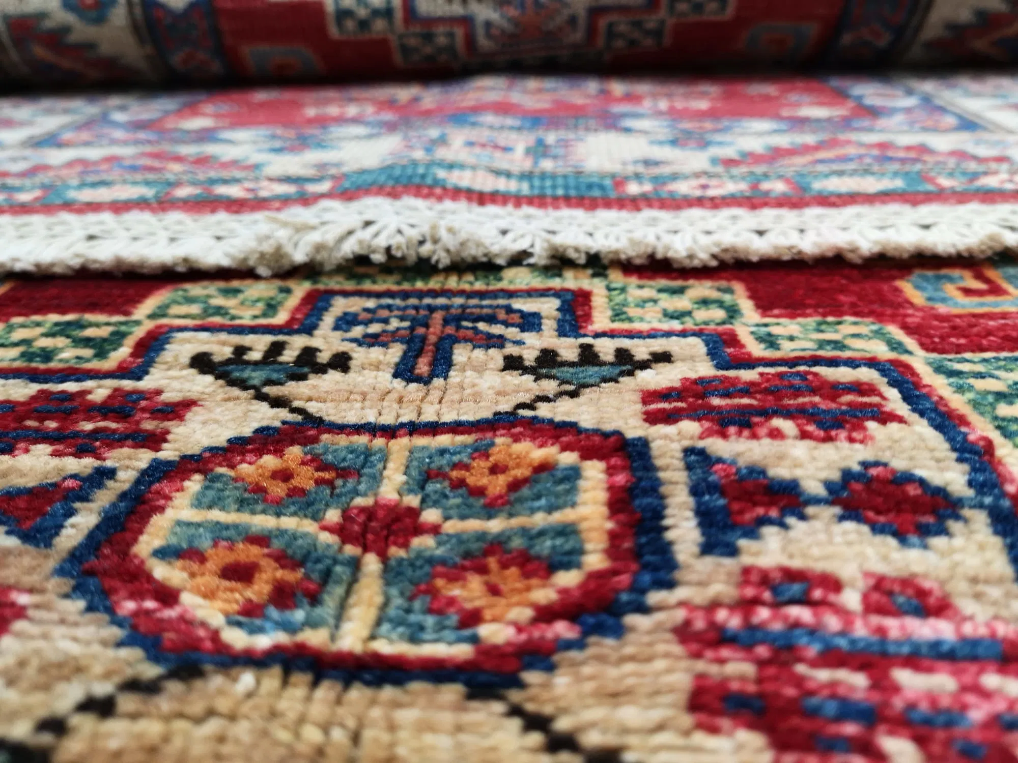 These are the latest and modern designs with a touch of  traditional and antique yet contemporary in style, originating mainly from Ghazni, Afghanistan. Each of our Qazaq rug is selected with care given to high quality and design.